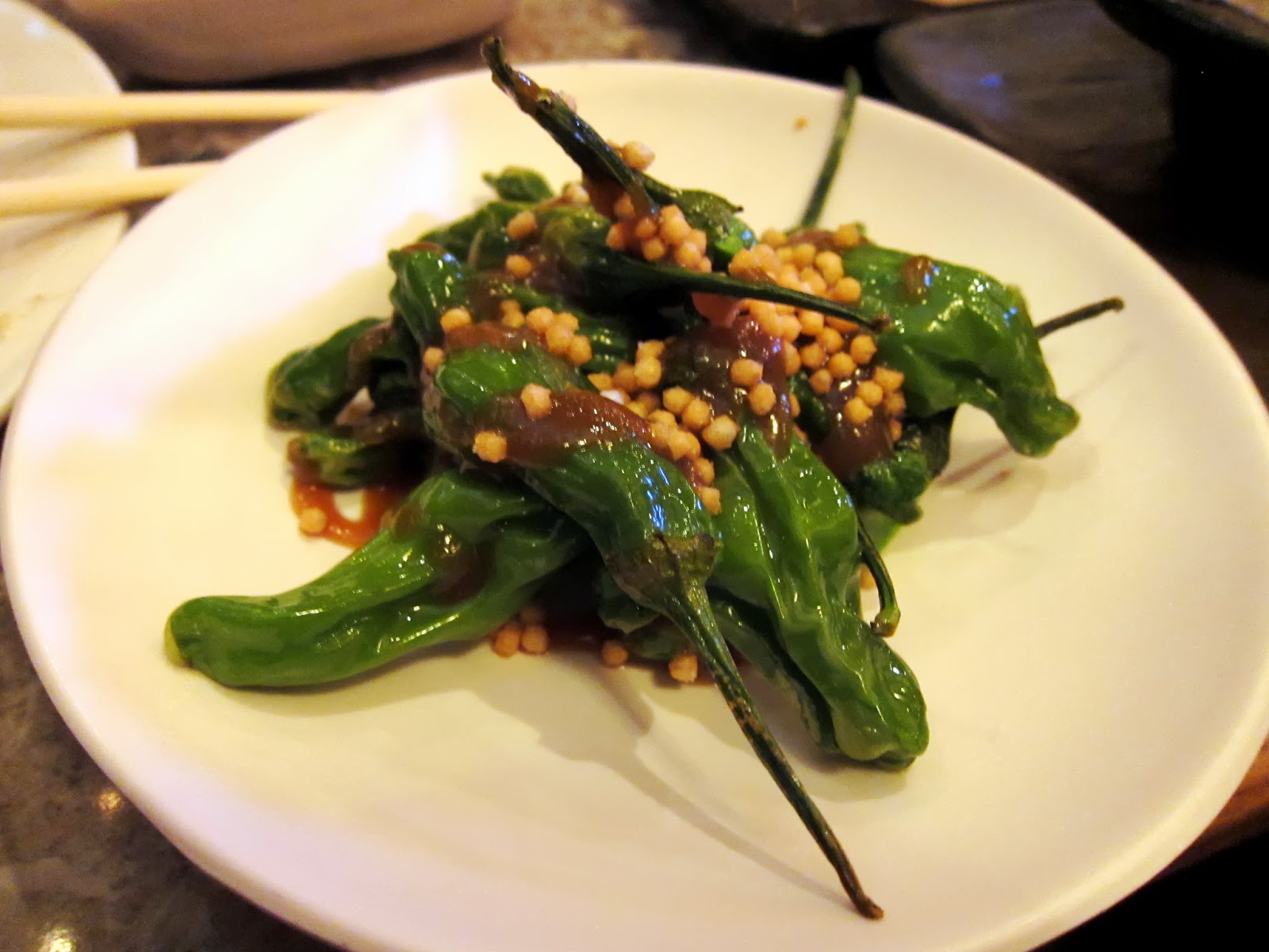 I don’t understand what’s so special about shisito peppers, but Big Head Talks Alot had to have them. The den miso was not too sweet. Those little balls are “arare” which are rice crackers flavored with soy. I can’t say I tasted much of it.