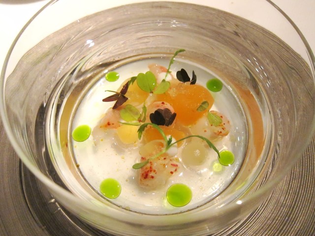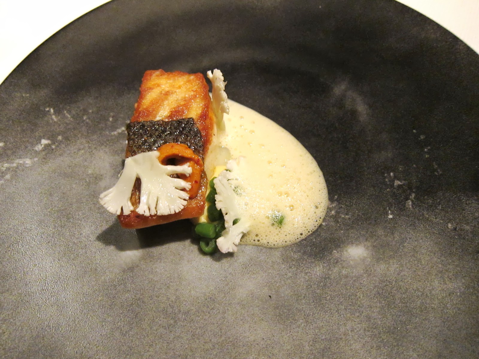 I started getting pretty full here, but I could not resist the moist fish with its perfectly crisped up skin. There was cauliflower foam and slices of delicate cauliflower. The bit of uni didn’t seem to fit in, buuuut I won’t complain when high quality uni is served in front of me.
