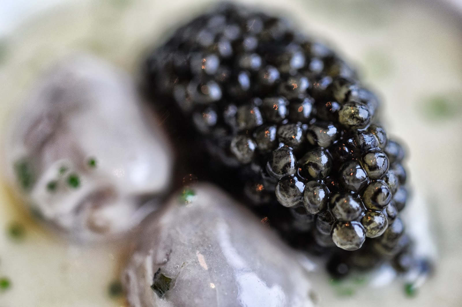 Oysters & Pearls sabayon of pearl tapioca with island creek oysters, sterling white sturgeon caviar
