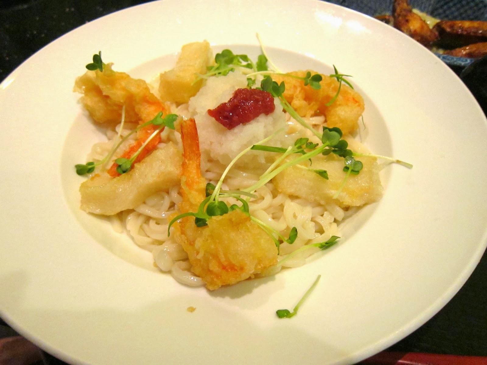 Cold Udon with Shrimp & Mochi Tempura