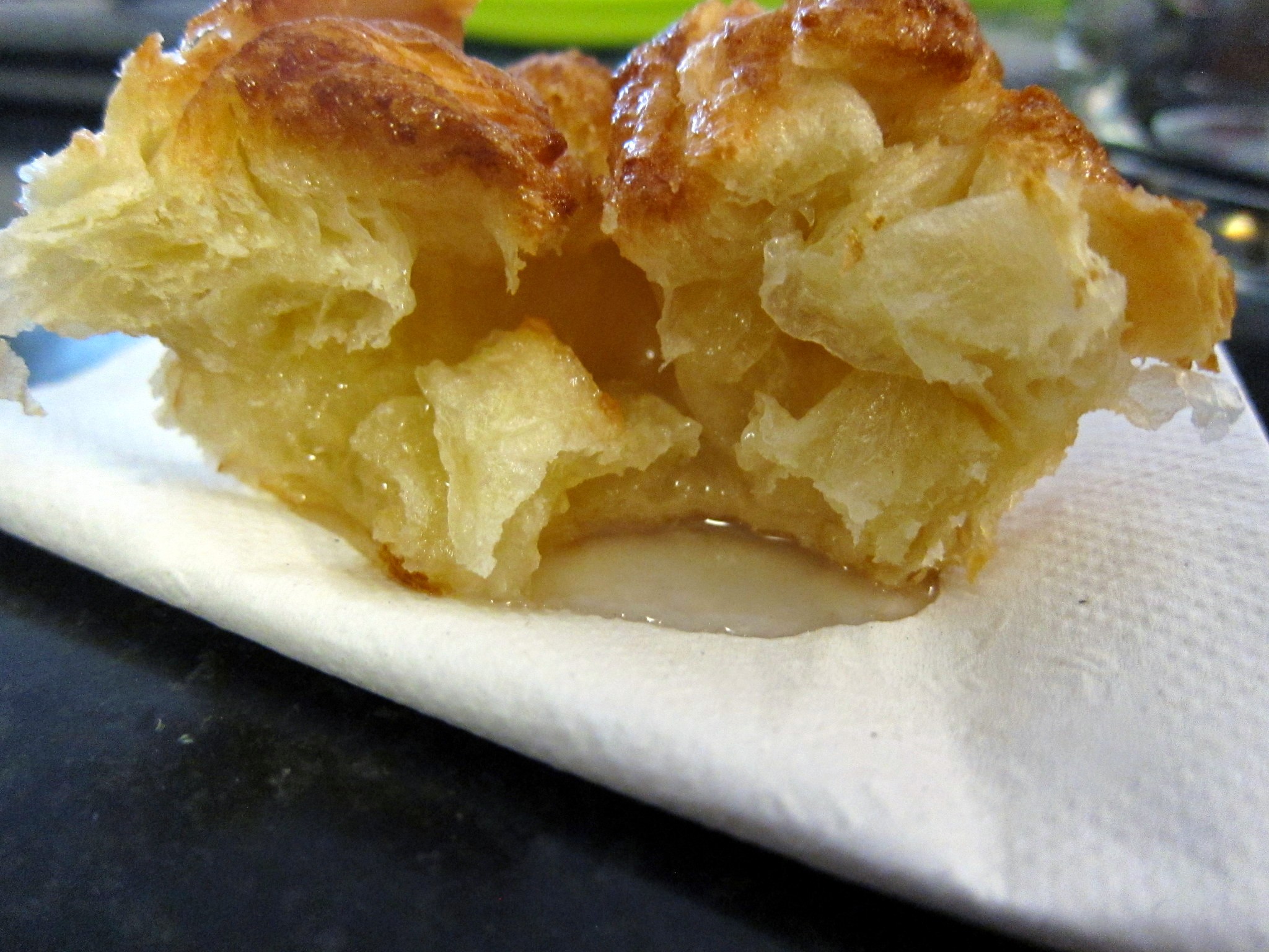 Behold! A flakey, buttery, and sweet croissant like creation with a sugary crust and an sweet oozing syrupy center. I will admit that the syrupy center is a bit much. I actually let a lot of it drain out before eating it all because it was just too much for me, but damn, this thing was soooo frickin’ good!