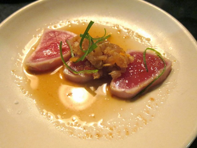 Triple T and Smooth Obturator, especially, have had it up to here with octopus in America. They claim it is tasteless and never fresh, always frozen. However, when they were in Greece, they had the BEST octopus. So I guess they’ll only order it there. I can somewhat agree with them that octopus can be quite hit or miss, usually miss. It’s either too rubbery or unpleasantly soft. I thought the sear was nice, and the lightly dressed salad added some brightness.