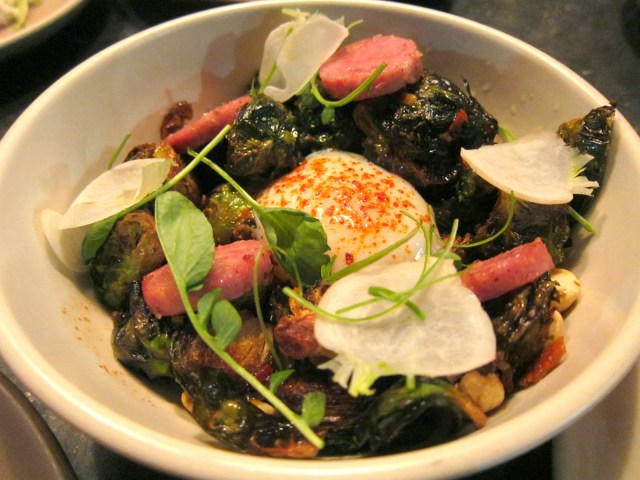 Crispy Brussels Sprouts chinese sausage, cinnamon, peanut, egg