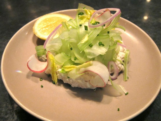 With a squeeze of lemon and some saltine crackers, this dish was an interesting smoky yet not too mayo-y fish spread. The added texture from the celery and radish gave some nice crunch.