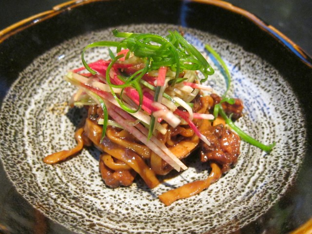 Lamb Belly Skewers cumin spiced, black vinegar, maltose reduction Shirley did an excellent job with the skewers which tasted pretty darn authentic in every way here. I guess I’ve only had these types of skewers once before, but at that time I was in the company of a true Beijing-er, The Pouter. And she thought Feng Mao was pretty good. The lamb has a good amount of fat in it making it even tastier than the stuff I had at Feng Mao. The caramelized onion with the notes of black vinegar made the whole bite really balanced.