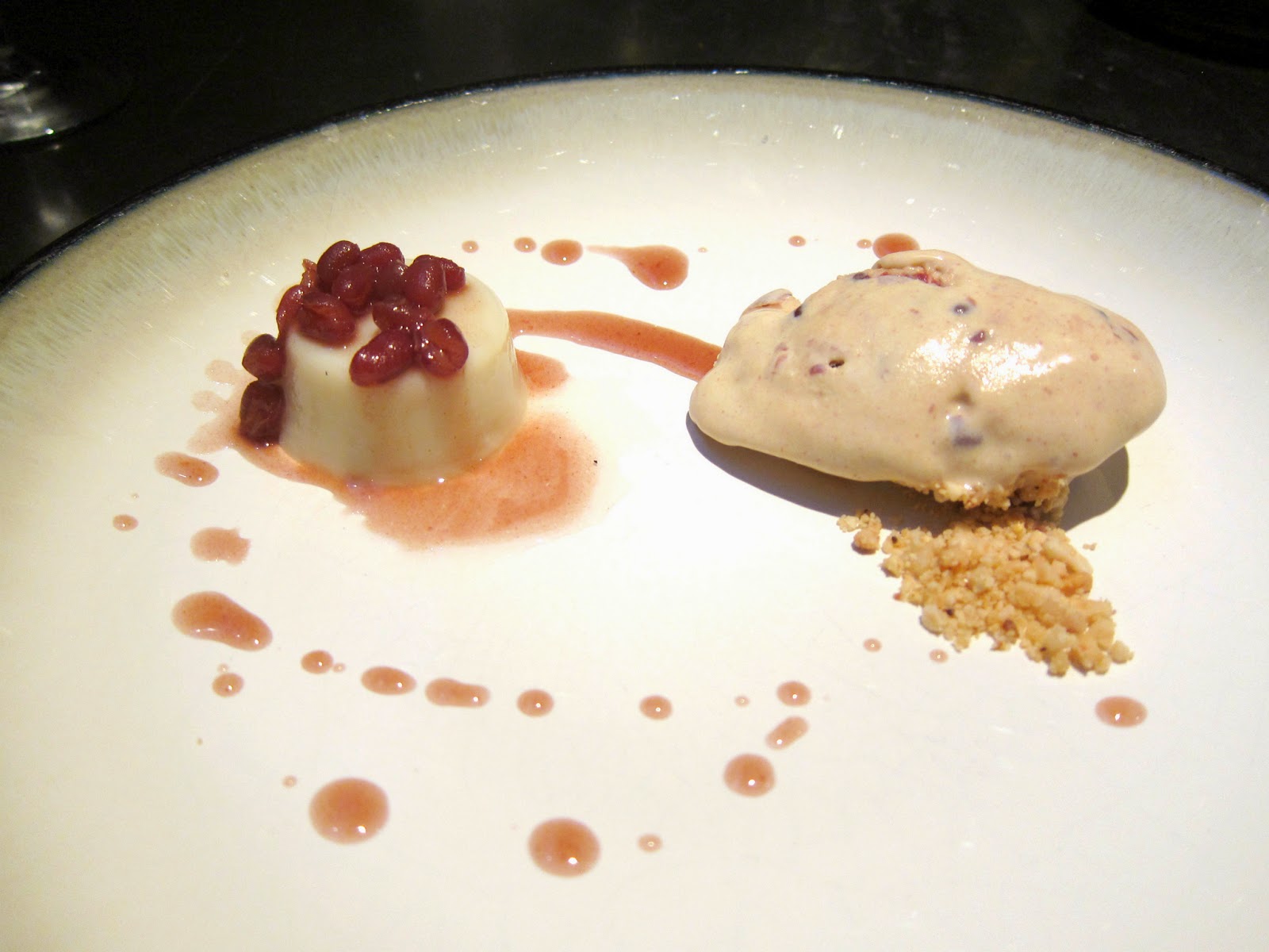 My one recommendation to Shirley for her restaurant is to hire a pastry chef! This was one of the saddest desserts I’ve had. The flavors were all very Chinese. The tofu panna cotta tasted very much like the tofu pudding you get at dim sum, but it was frozen in the middle so the texture was off. The red bean ice cream was grainy which I think is to be expected with red bean anything. But, the number one thing I look for in ice cream is smoothness. The salty peanut crumble was an excellent addition.