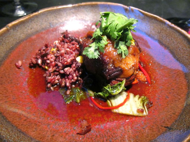 This was a pretty simple straight forward preparation of a really delicious Chinese steamed fish. The banana leaf didn’t impart any flavor I could notice but it was a pretty presentation. The fish was super fresh, caught just that morning, so it was so moist and tender. It was served with a simple salad of fennel and cilantro and some sort of citrusy dressing.