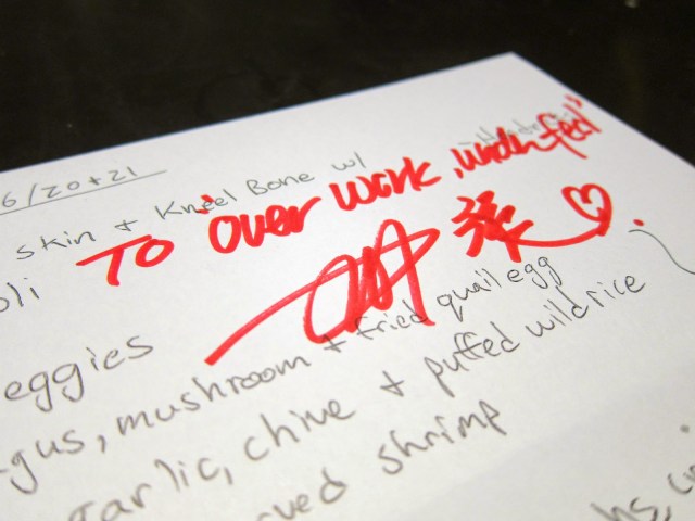So we didn’t get the prime seats in the middle of the counter, but we still got plenty of love and attention from Shirley and and Jason Quinn (far right, chef/owner of The Playground).