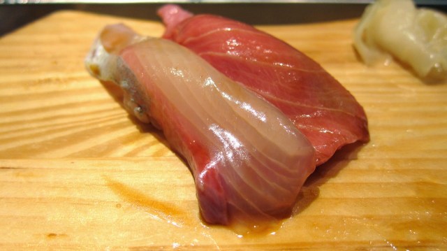 MaguroNow onto the sushi! One thing I’ve learned from watching documentaries on sushi, is that “fresh” sushi isn’t necessarily caught and served to you within a day. Fish is caught, flash frozen, shipped half way across the world, and the art of a great sushi master starts there I think. I guess fish can be aged just like steak is aged. I guess that is what is done differently here. The sushi definitely tasted very flavorful.