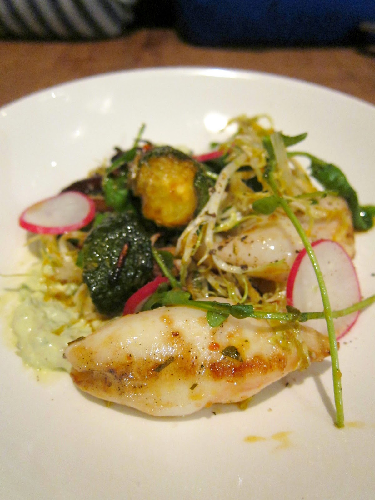Grilled Calamari squash, harissa, radish, green olive aioli