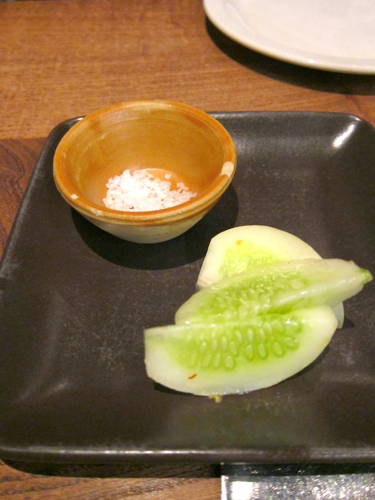 A really simple slightly pickled/salted cucumber. They kind of look like lime wedges and definitely had some lime flavor.