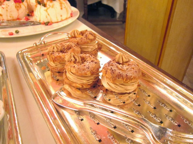 The desserts are a dizzying array of classics: creme brulees, cream puffs, pistachio cakes, baba rum cakes, meringue thangs, seasonal fruits, etc. I didn’t really even eat most of these desserts because I was so damn full.