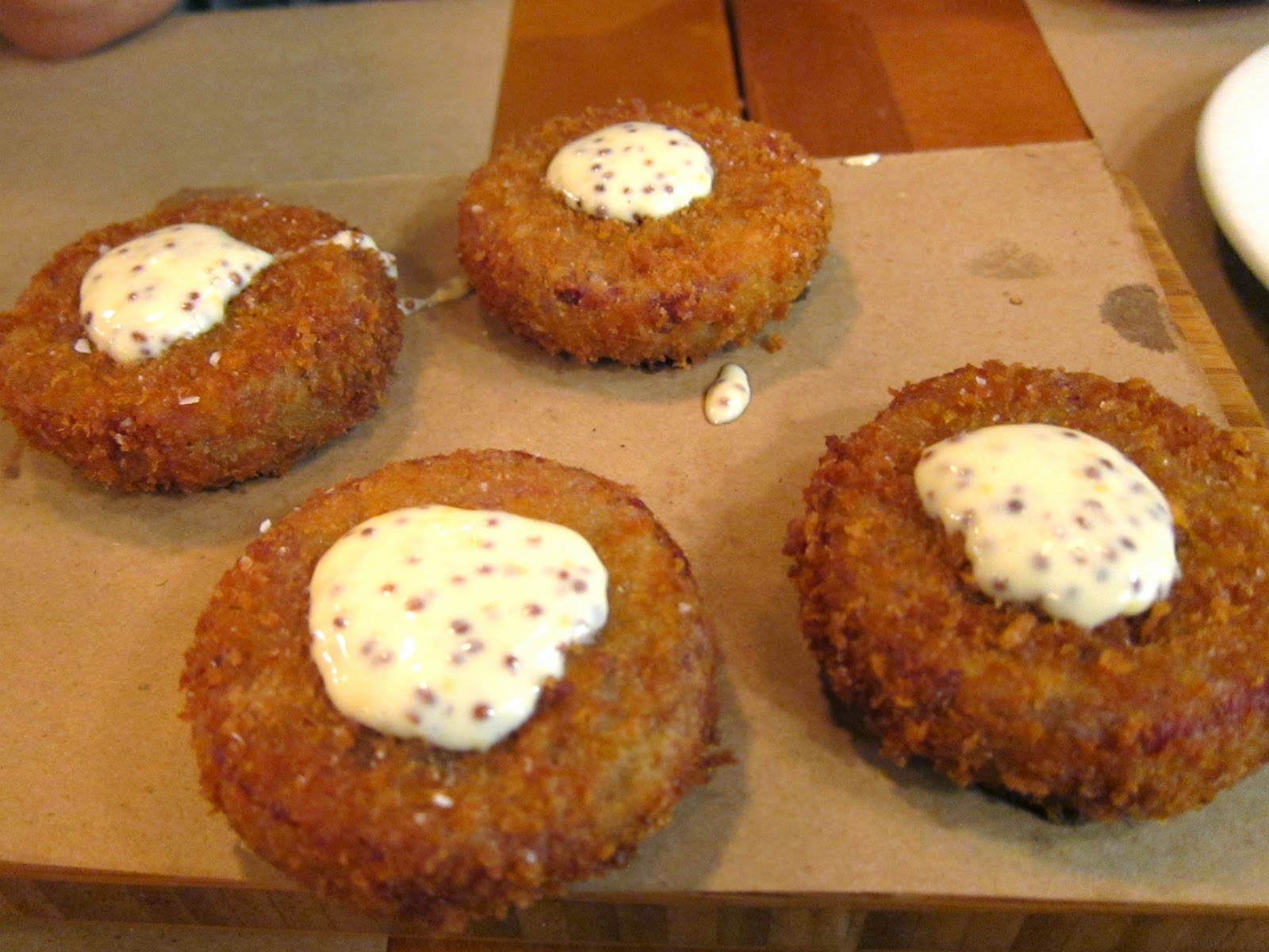 Smooth Obturator was completely in love with this dish, and I’ll have to agree that it was the stand out starter. Random piggy bits were fashioned into crispy fried patties, whose richness was cut by a slightly tangy sauce. Yums!