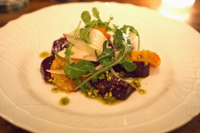 Beets satsumas, pistachio aillade