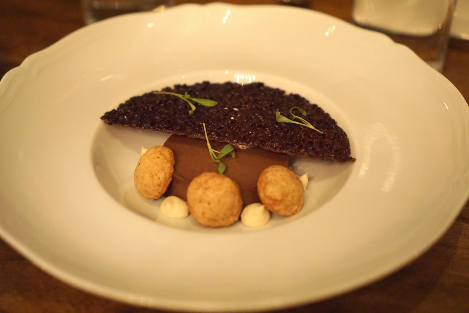 I found it a bit odd that the selection of desserts were all chocolate/coffee based. It felt a little unbalanced. But for 6 people, 3 free desserts only seemed right even if they were similar. Your standard chocolate custardy pudding thang. Yummy chocolate tuile.