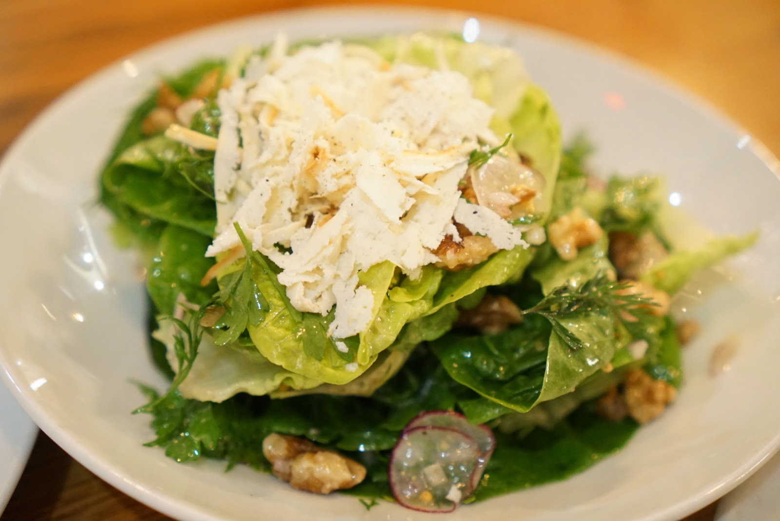 Genevieve’s Little Gem Salad walnut vinaigrette, ricotta salata, soft herbs, radish, shallot