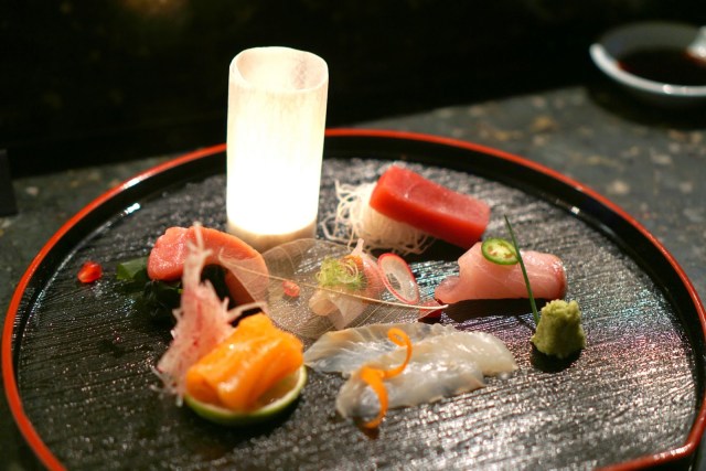 Beautiful presentation. That candle looking thing is actually a radish thinly sliced and then wrapped around a tea light candle. Every piece of fish was delicious, fresh, and clean tasting. Top notch.
