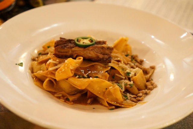 Braised Lamb Pappardelle butternut squash, jalapeño yogurt, shaved parmesan, eggplant, oven roasted tomatoes, candied sunflower seeds