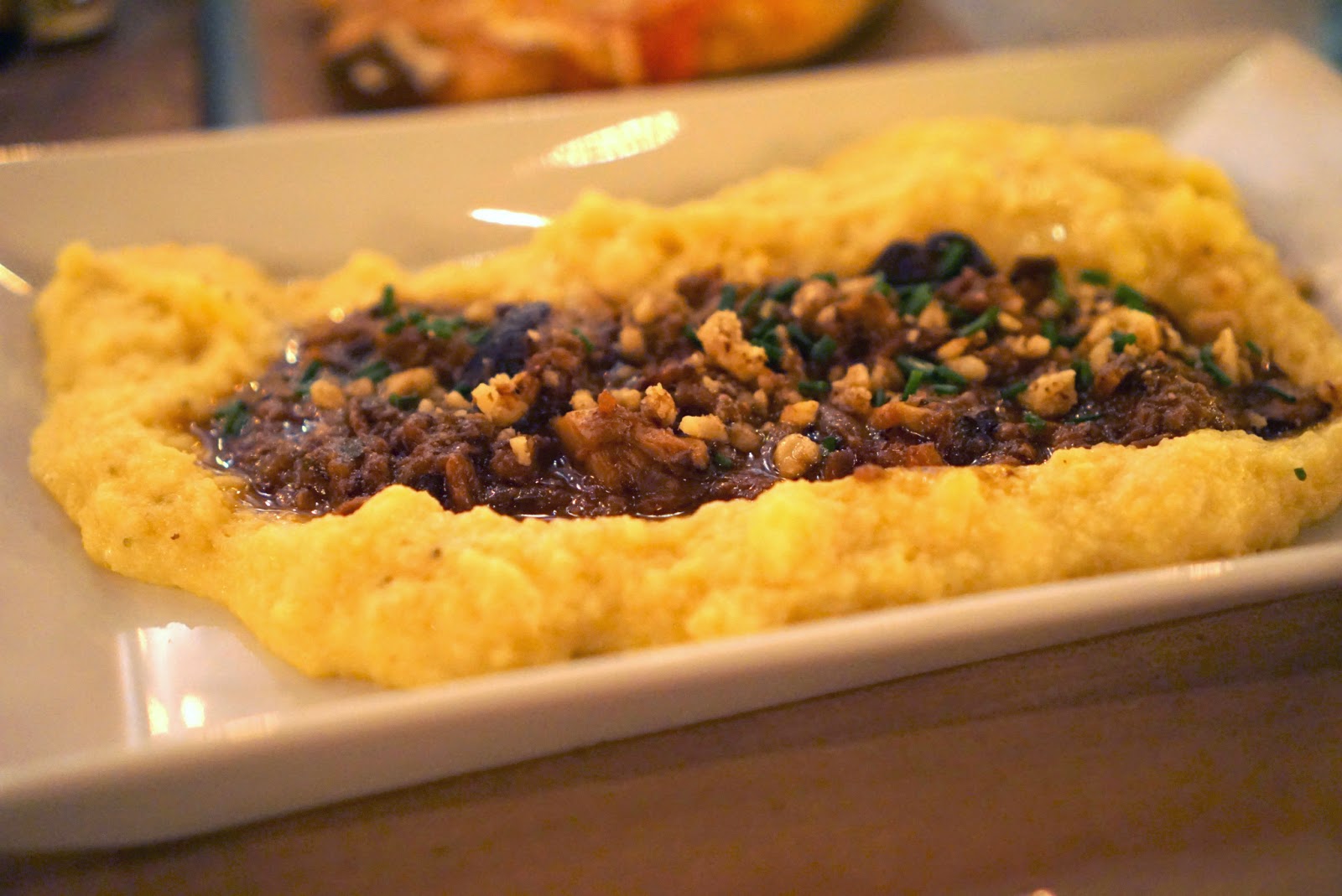 Creamy Truffled Polenta roasted mushrooms, lamb and short rib ragu, crushed walnuts, chives, lemon zest