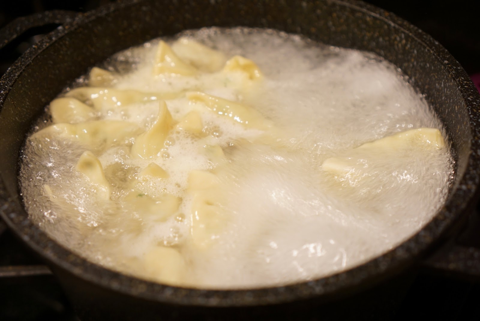 Chinese people do this weird thing to time the cooking of their dumplings. Boil your water, then add dumplings. Once it comes to a boil, you add another cup of water and bring it to a boil again. Repeat this 2-3x and your dumplings are cooked. I wonder if Chinese know about this thing called a kitchen timer??