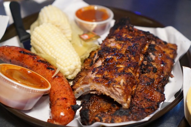 The baby back ribs were quite the contrast from the beef ribs. These were smaller, drier, less juicy and fatty. Everyone seemed to really like them though. Flavor wise, it was spot on and didn’t need much sauce. I am glad we ordered the sauce on the side. I think Pink LuLu, Shorty Mak Daddy, and I consumed most of the sausage link. I cannot resist salty, cured, processed meats! The corn was a refreshing and necessary side order to balance out all the junk. Sweet and crunch, just the way nature intended.