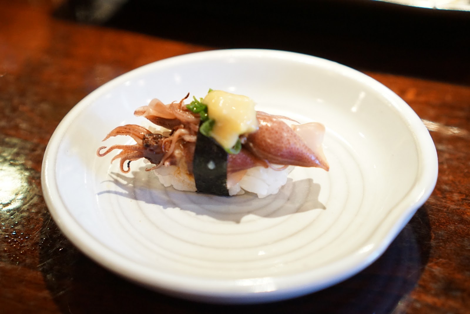 I’ve only had baby squid one other time at Sushi Sushi. There it was remarkably clean and appetizing. Not quite the same at Nana San unfortunately. This was probably my least favorite piece of the meal.