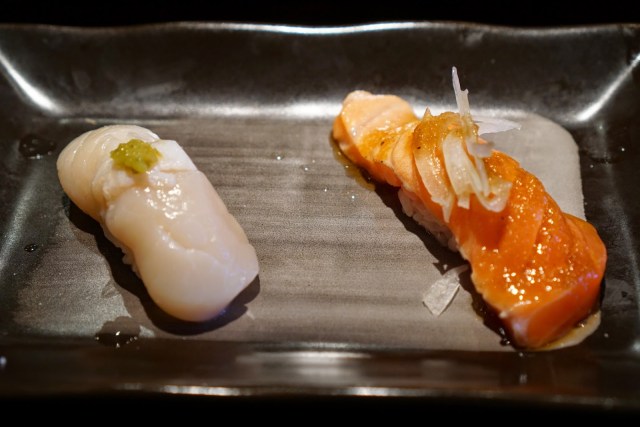 Hard to beat Ohshima’s scallop. The salmon was brightened with some yuzu and shaved onions, but Ohshima’s cherry salmon wins again.