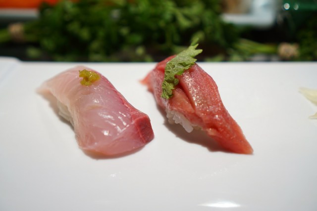 Kanpachi was clean, but I’ve had better blue fin tuna. I did not like the shiso of course.
