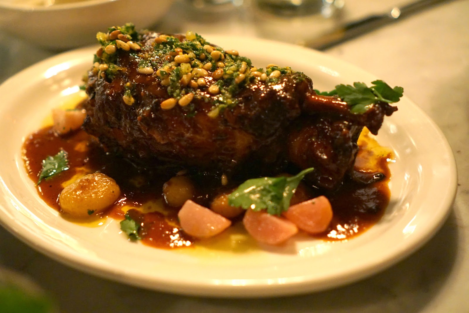 Pork Shank cioppolini onions, baby turnips, gremolata, pine nuts