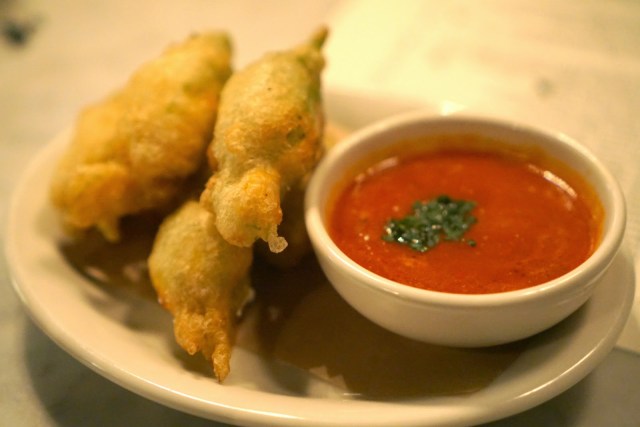 Squash blossoms are really just a vehicle for crispy fried goodness filled with cheesy oozy deliciousness. I don’t think I’ve ever had a bad squash blossom.
