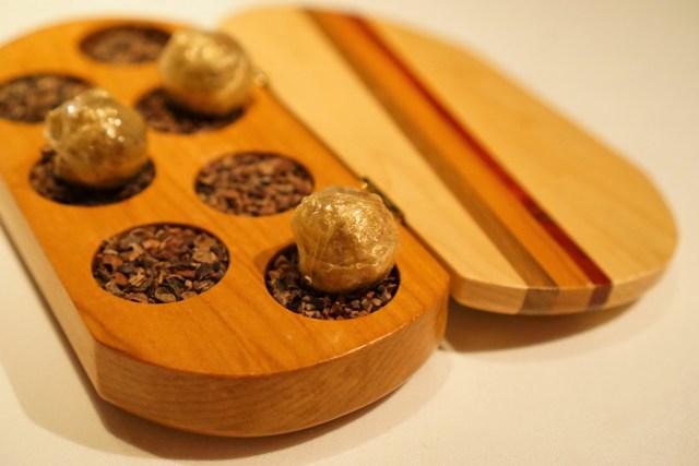 Popcorn was mixed with liquid nitrogen at tableside to make these frozen bites. The intention was to eat these as quickly as possible to maximize the gimmicky “dragon’s breath” like effect.