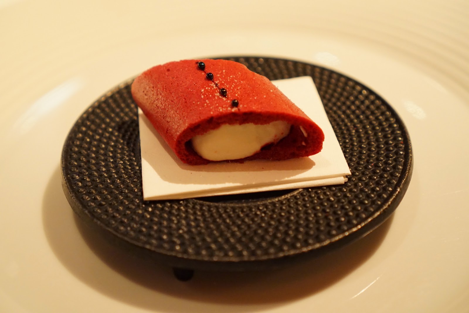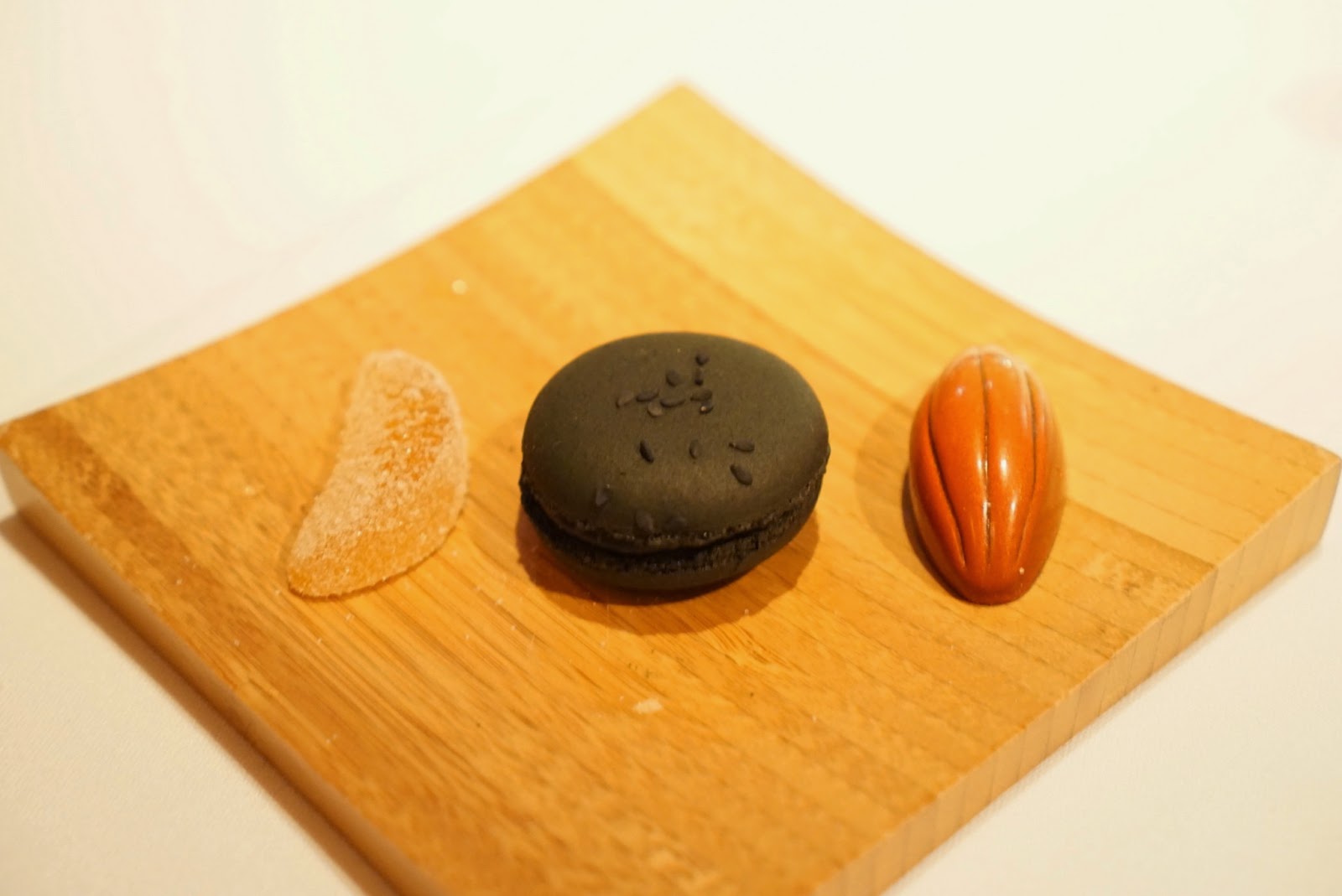 I almost never enjoy the mignardises. Not any different this time. The macaron was a bit of a twist, with the black sesame flavor. Not something I commonly see in macarons.