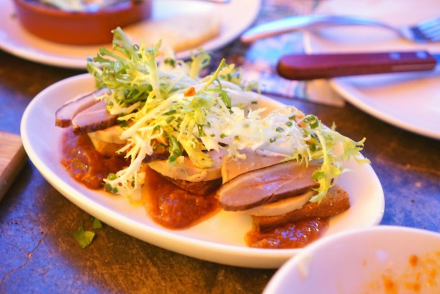 Bocadito de Foie foie gras torchon, smoked duck, rhubarb jam