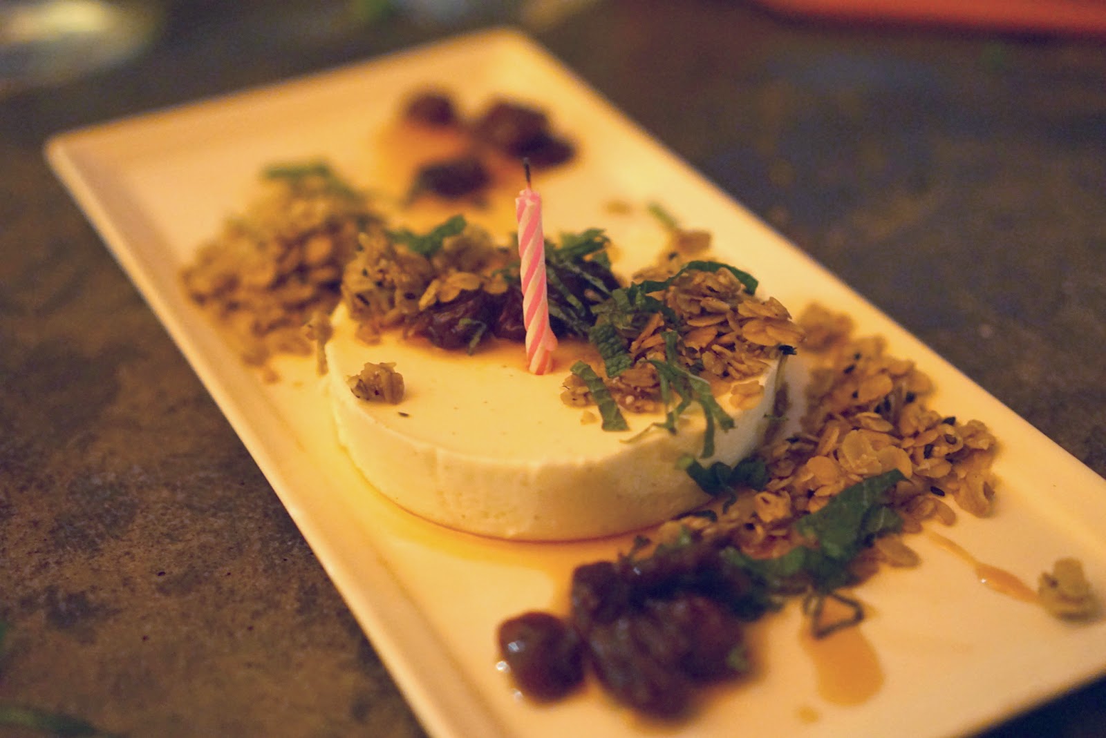 Teety highly recommended this dessert. While the cheese part was a tad grainy, inherent in goat cheese, the the tangy sweetness was far more interesting and elevated than your normal cheesecake. Instead of a graham cracker crust, some home made granola was strewn across the dish adding some soft yet crunchy texture. The basil was a unique addition, which you either loved or thought was weird. I kinda liked it. Who knew basil had a place in dessert?