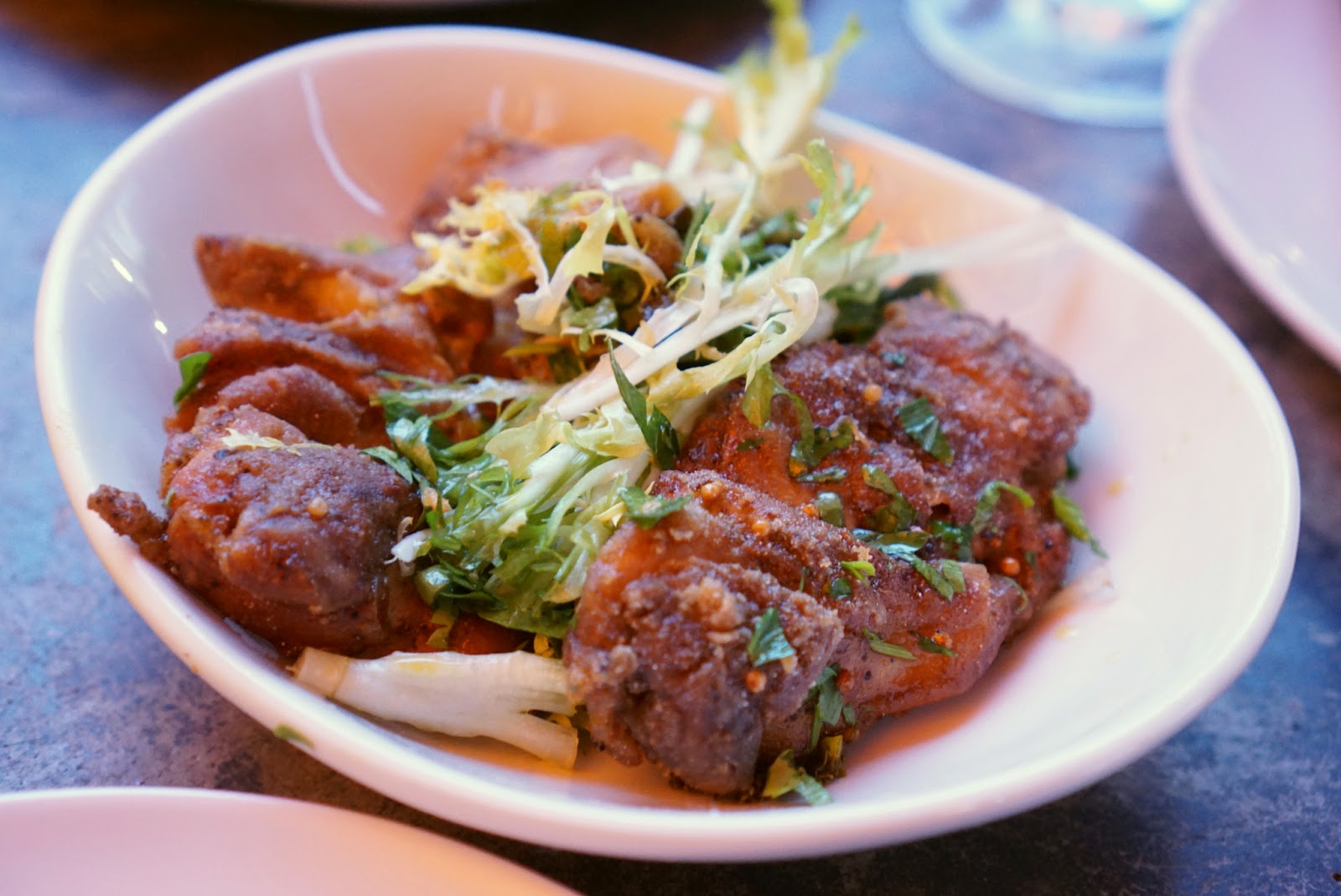 Pollo Repollo crispy chicken, pickled kale, onion agridulce