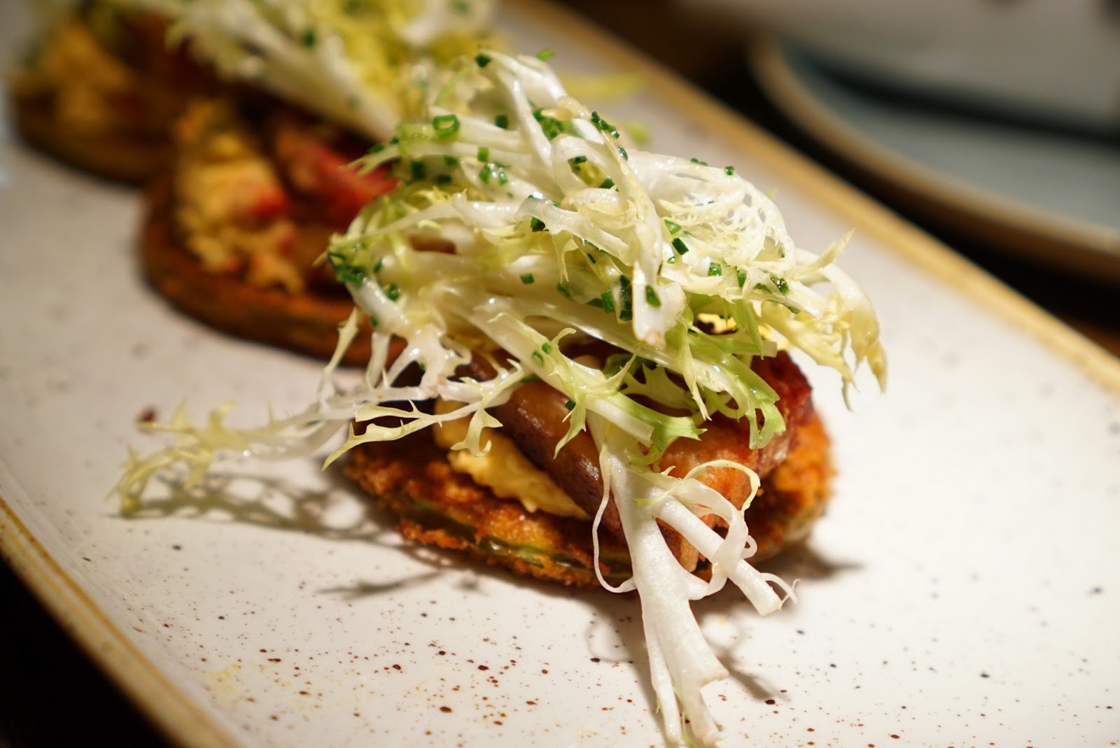 Fried Green Tomato BLT pork belly, green, tomato jam, house-made pimento cheese