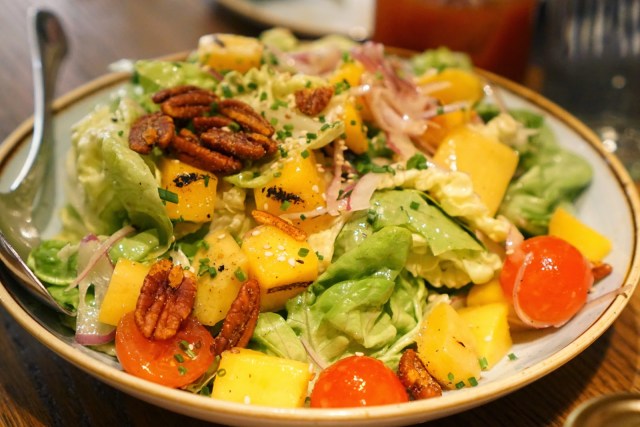 Butter Lettuce & Grilled Mango Salad smoked pecans, benne seed vinaigrette