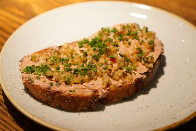 Chicken Liver Toast grilled country bread, cuke and fresno chili relish