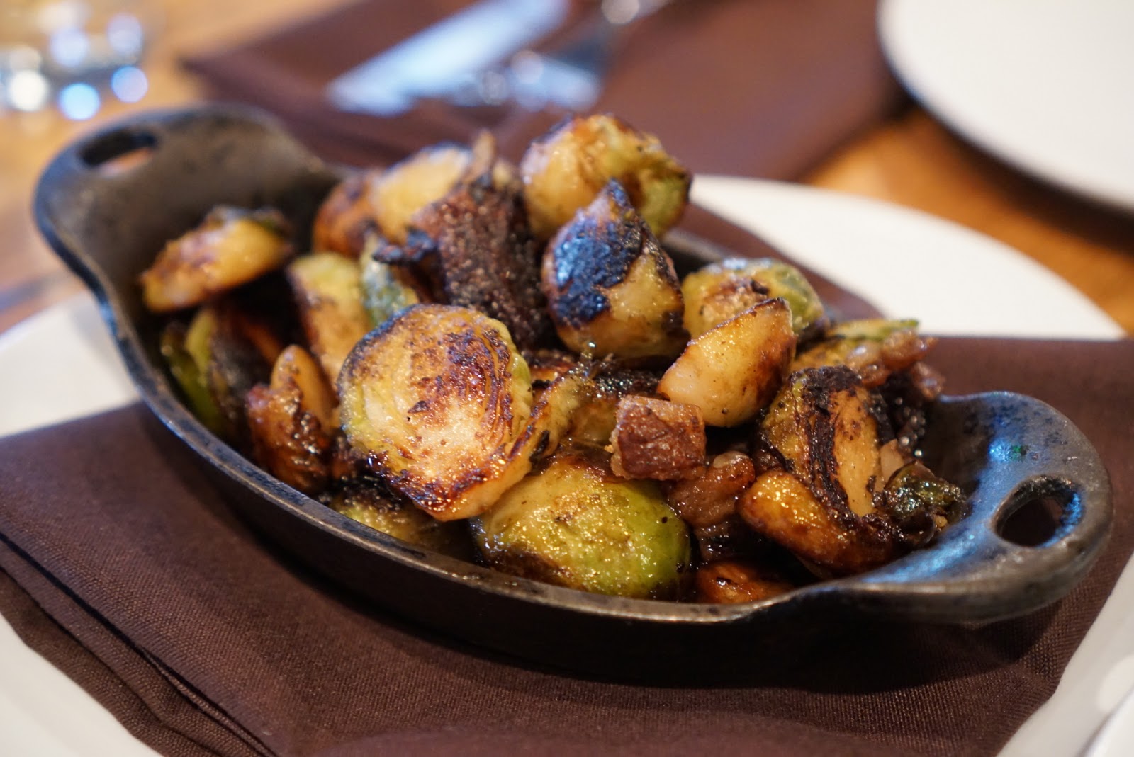 Roasted Brussels Sprouts fried pork belly, shallots, parsley, pomegranate molasses gastrique
