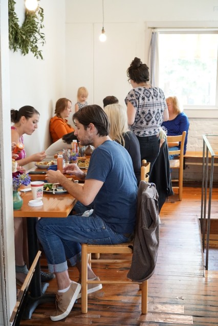 Decidedly Undecided and I attempted to brunch it at one of my favorite spots, Tasty & Alder, but of course the wait was ridiculous so we skedaddled from the shiny part of Downtown Portland over to the more grungy Northwest Portland. I had never heard of Sweedeedee, but Zhu Zhu Hamster suggested it and Decidedly Undecided gave it two thumbs up. My friends are wary of sending bad food recommendations my way because they know about my discerning palate and high standards. The restaurant itself is so typically Portland. It basically looks like a shack from the outside and very quaint on the inside. When I lived here, I would have turned my nose at this place or at least rolled my eyes and sighed “Oh, Portland…” Now, I can really see the charm. The place is just simple, and that is reflected in the food. I wish I had taken a picture of the kitchen. It didn’t really look like a kitchen, more like a room with people cooking in it. It was more wood than stainless steel.