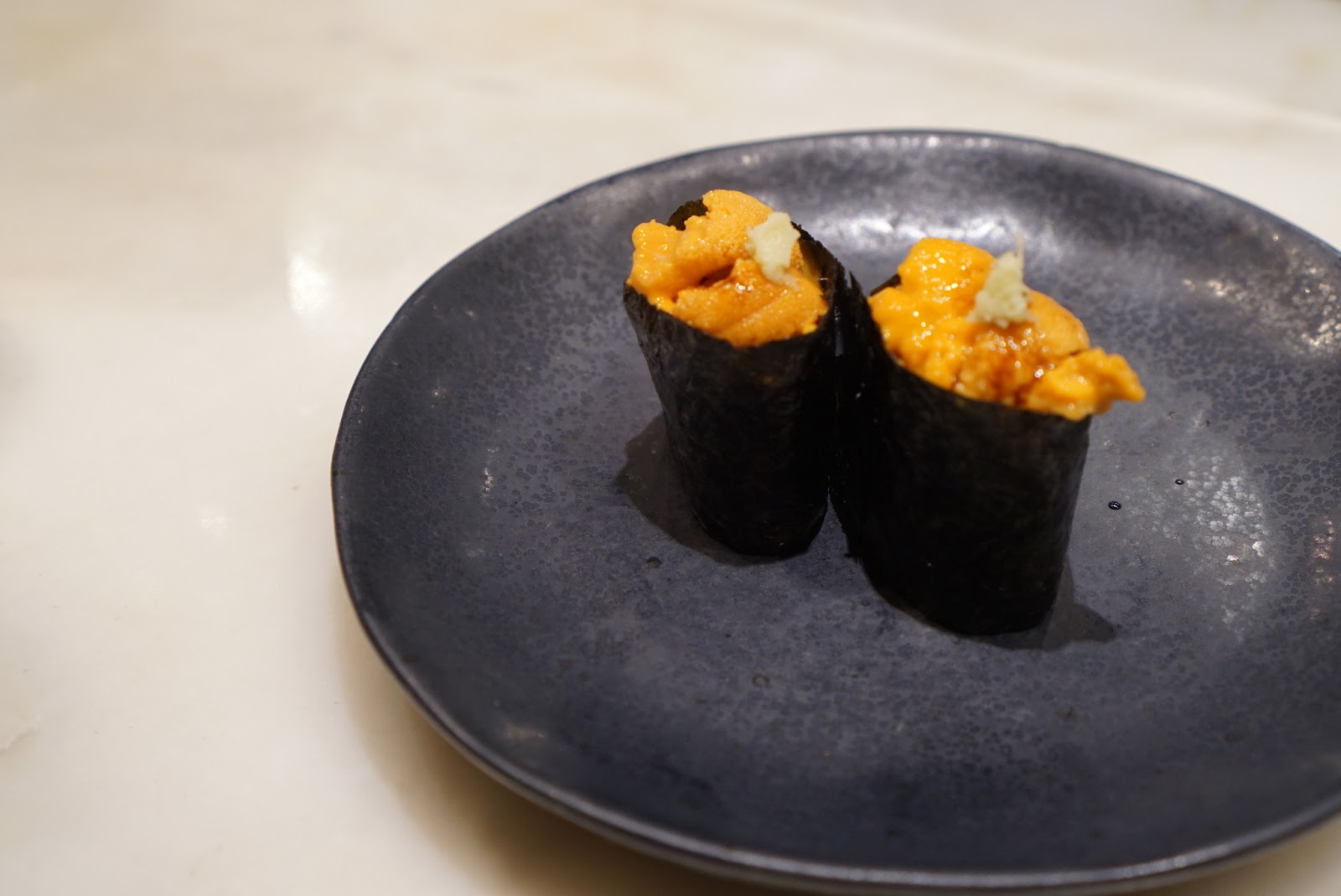 The picture doesn’t really show how dark and deeply orange this uni was compared to the more common Santa Barbara uni you’ve probably had. It also tasted just a twinge more bitter and less sweet than what we were used to. We didn’t quite give it a resounding approval at first. They gave us a complimentary 2nd round of Hokkaido uni because it was our “anniversary.” I felt a bit guilty for the egregious lie, but I can’t pass on free uni. I definitely enjoyed the 2nd bite and did not feel as much bitterness linger. It was still delicious overall, but if I had a choice I would choose Santa Barbara uni.