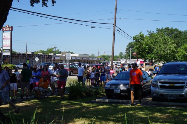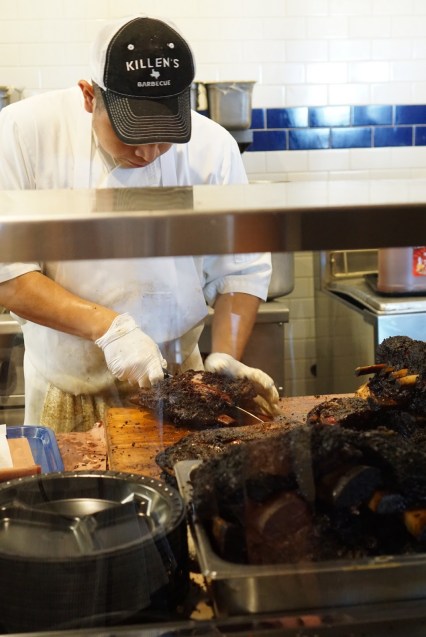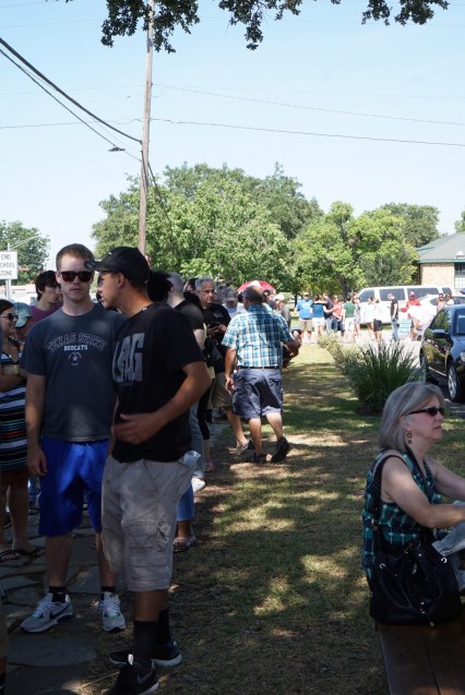When in Rome, do as the Romans. In Houston, they stand in long lines under the punishing sun, enveloped in the sweltering heat, with a beer in one hand, all for the promise of Killen’s BBQ. Texas is all about the BBQ. This line was no joke. We got there at 10:30? or maybe later and the line was at least 50 if not 100 people deep. That’s not counting the people hanging out in the shade while the kinder souls in the party stood in line. Notice where I’m taking this picture from??? Bair Hugger Deluxe is such a soul. He shooed off JW and I to get some free icy cold beer for her, and water for me, while we waited in the shade. Once the place opened up at 11, it started moving along. We probably sat down to eat around 12-12:30?