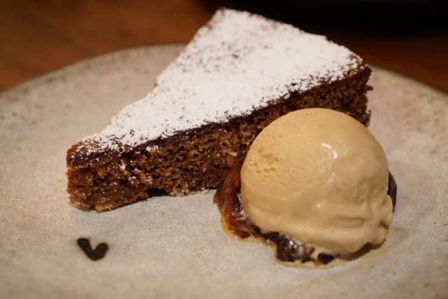 Running Man and Triple F were going on and on about this cake. The hype was off the charts. I am glad to say it was pretty good and not like anything I’ve ever had. It has a deep caramelized sugar flavor, which complements the pureed dates and peaches that makes the base of this cake. If you like light and fluffy cakes, this is not for you. It’s dense and moist. I guess depending on the season, a different fruit base is used. During the fall, apples are used instead of peaches and the waitress said she likes it better then.