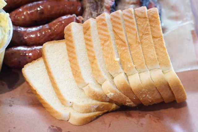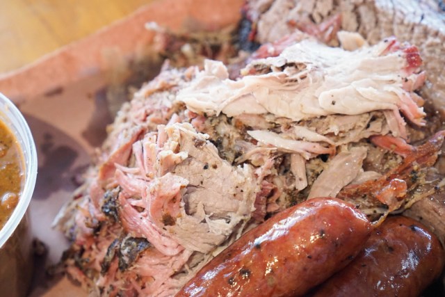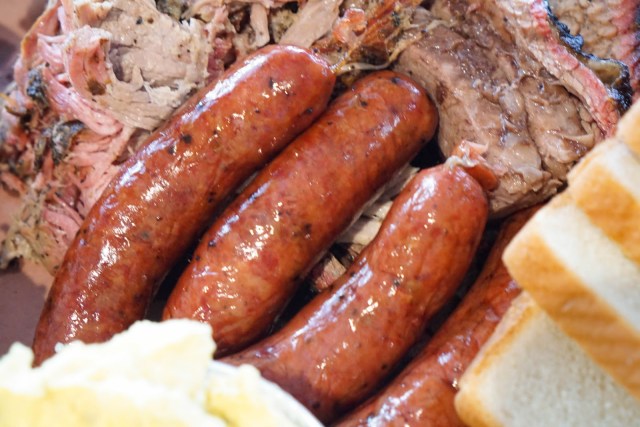 My butt was hurting from sitting on the concrete pavement after 30 minutes. I texted The Annoyer to bring some scrubs for me to sit on. He came back with breakfast tacos and two lawn chairs! Totally unnecessary, but made the experience that much more bearable. What was probably more important than the lawnchairs was a giant umbrella to shade from the unrelenting sun. Seriously, with a lawnchair, umbrella, and enough battery life on your smartphone to last about 4-5 hours, the wait really just breezes by. Ok, maybe it’s not that breezy, especially in 90+ degree weather. Making friends with the people around you is probably what made the time go by pretty fast. You’ll find that few waiting in that ridiculous line is actually from Austin, Coming here seems to be the thing to do for out-of-towners. The DonBon says people who live in Austin know there is comparable BBQ elsewhere so don’t bother with the wait.