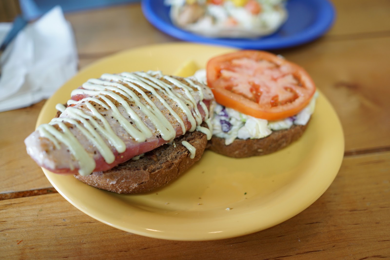 We also enjoyed the ahi tuna burger with wasabi aioli. Man did that wasabi carry a kick. It wasn’t as flavorful as the fish tacos but The Annoyer quite enjoyed it.