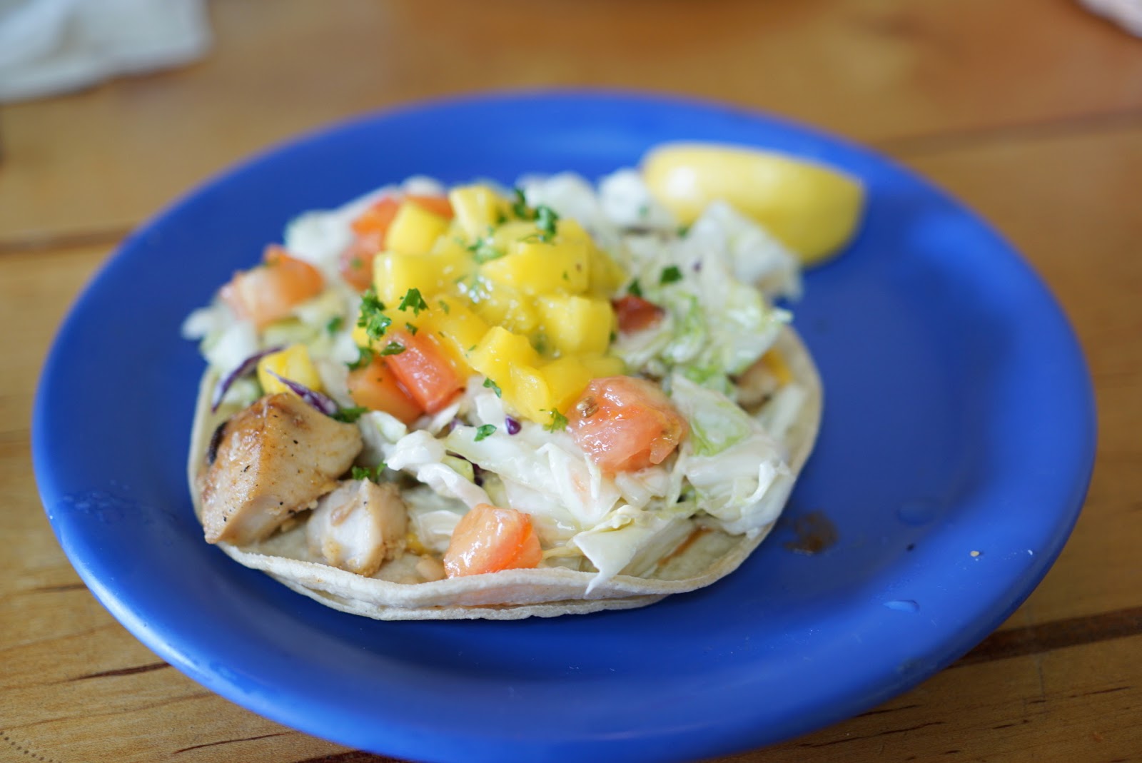 The fish tacos were interesting. It was basically a crunchy grilled tortilla with a soft tortilla on top of that with melted cheese. The fish was grilled and tender. But I quite enjoyed the mountain of crunchy cabbage slaw, tomato and mango salsas.