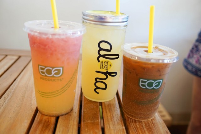 Our lemonade was not too sweet. The pineapple made it Hawaiian and the ginger made it a bit zingy. I mostly got the lemonade so I could get the cool reusable hipster glass. I made good use of that glass during the trip. The strawberry lilikoi was a beautiful ombre, like a Maui sunset. It was a little bit sweeter than the pineapple lemonade. We paid an extra $5 for the reusable mason jar glass. I used it again during the trip. It was very festive. Too bad I didn’t get to take a picture of it on the beach like all the other Yelpers.