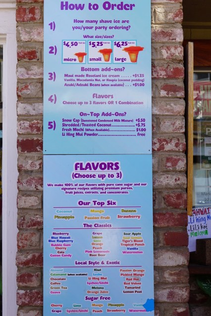 Of course, I had Ululani shaved ice. It’s like the Starbucks of Maui. It’s everywhere you turn, on every corner. It turned out to be better than what I imagined for Hawaiian shaved ice. The shaved ice I’ve had before was pretty icy and crunchy. The flavoring was like dyed sugary syrup. I’m not sure how they make their shaved ice at Ulalani but the ice is smooth and the flavor doesn’t taste like it was just dumped on top from a squeeze bottle.