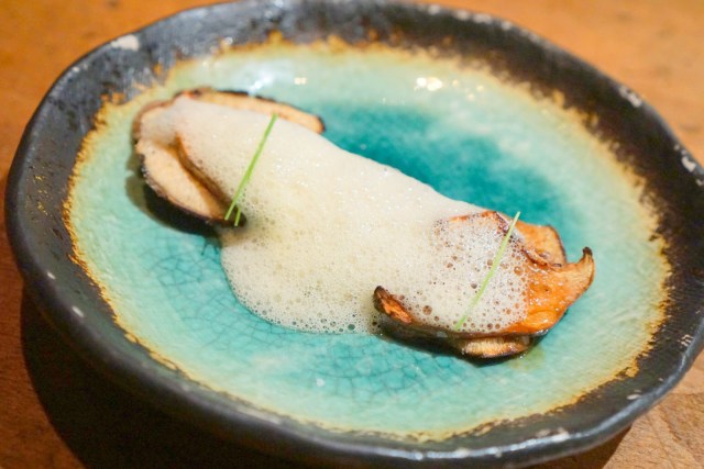 Grilled Chanterelle & Shitake Mushrooms rosemary garlic oil, sesame froth, soy
