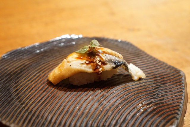 Fairly clean for mackerel. The olive puree is definitely nothing I’ve had before in sushi and paired nicely.